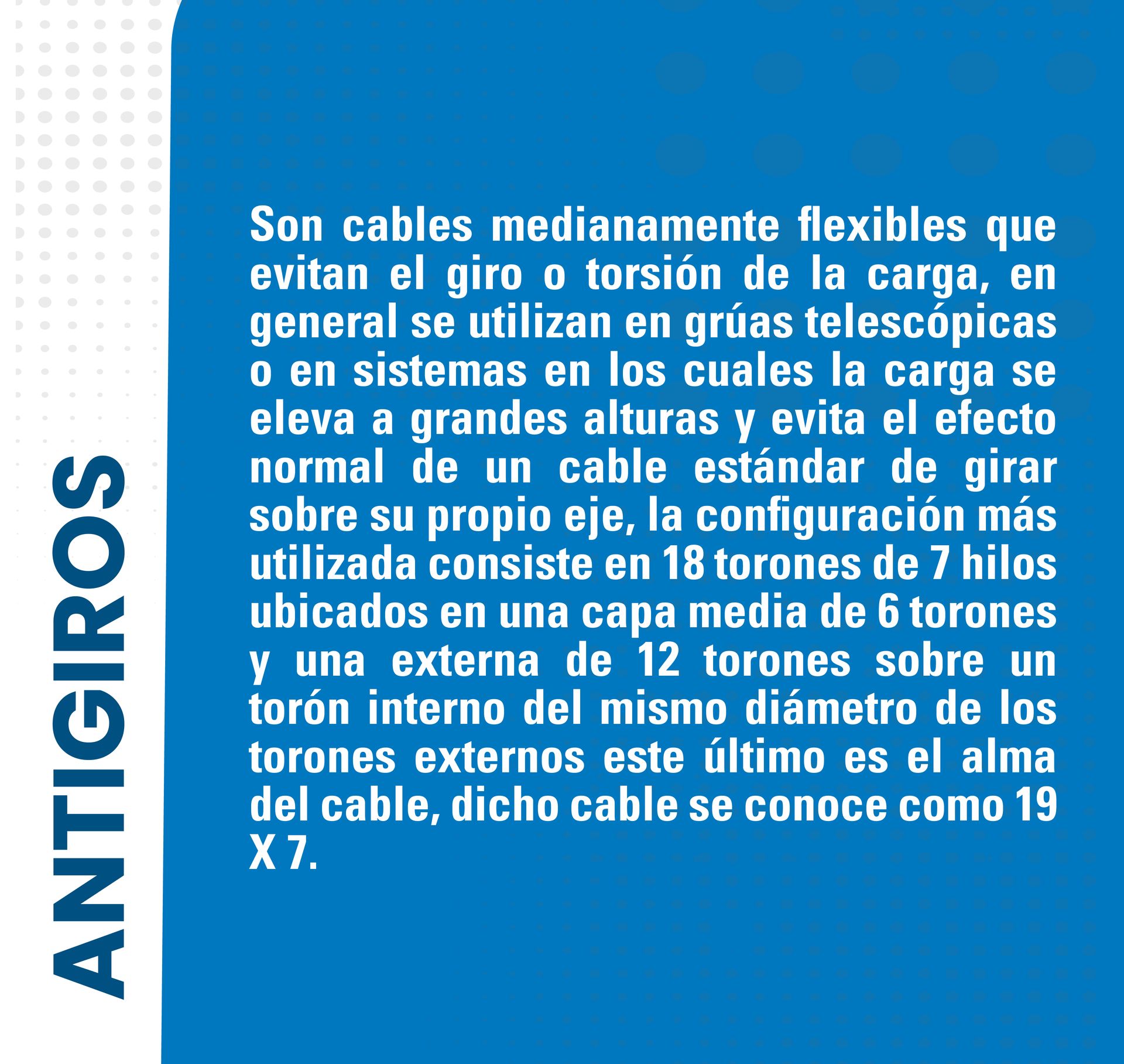 Ej.: 6X26= el numero 6 determina el número de torones y el 26 los alambres de cada uno de los torones. En ocasiones esta descripción acompañado del tipo de alma o núcleo que trae ej. 6X26+iwrc
